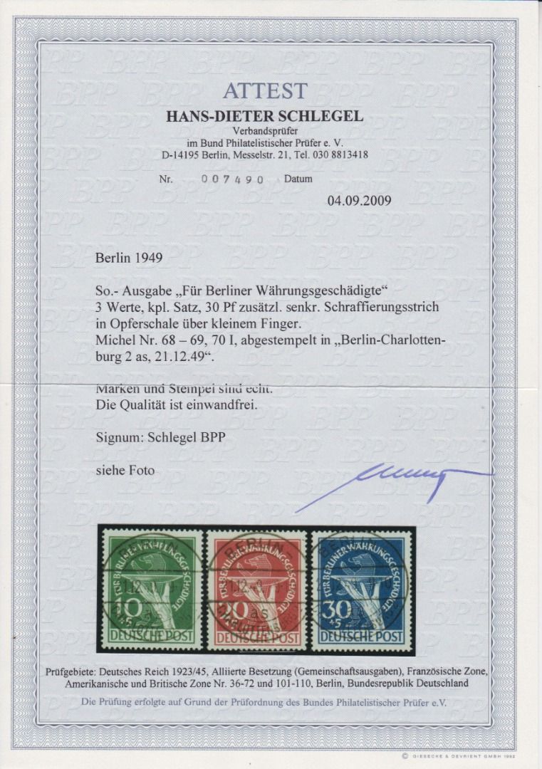 Berlin 68/70 mit Vollstempel und 70 PF I mit Attest Schlegel