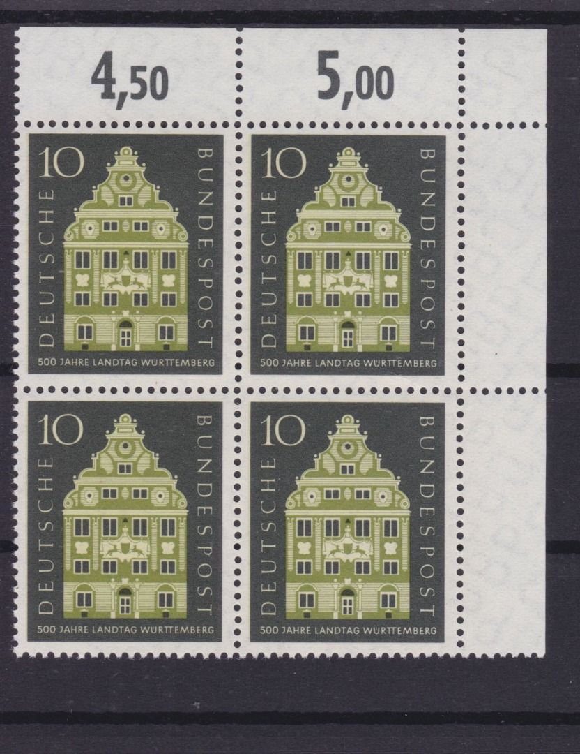 Bund 279 Eckrand 4er-Block postfr. Landtag Württemberg 1957
