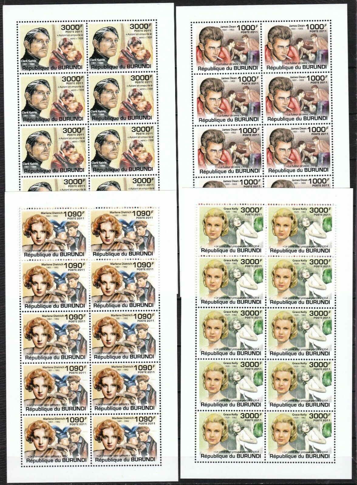 Burundi 2162/2165 postfr./mnh James Dean Grace Kelly Dietrich Gable Michel 95 €.