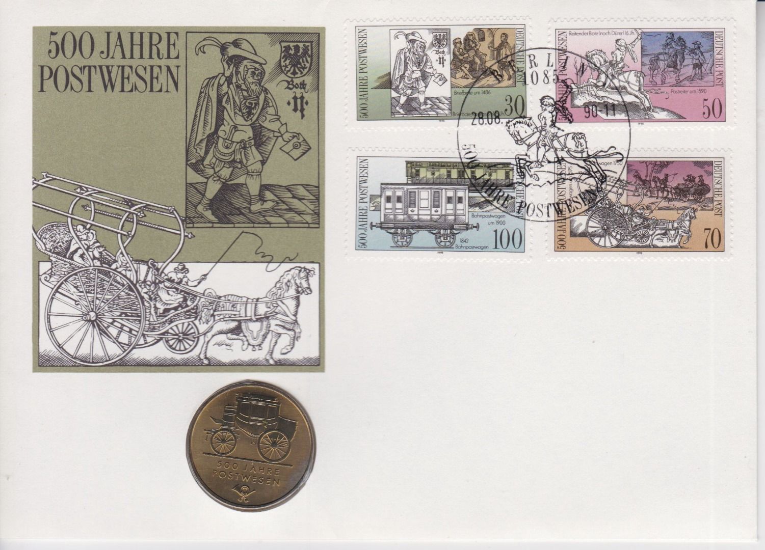 Numisbrief DDR 5 Mark 1990 500 Jahre Postwesen