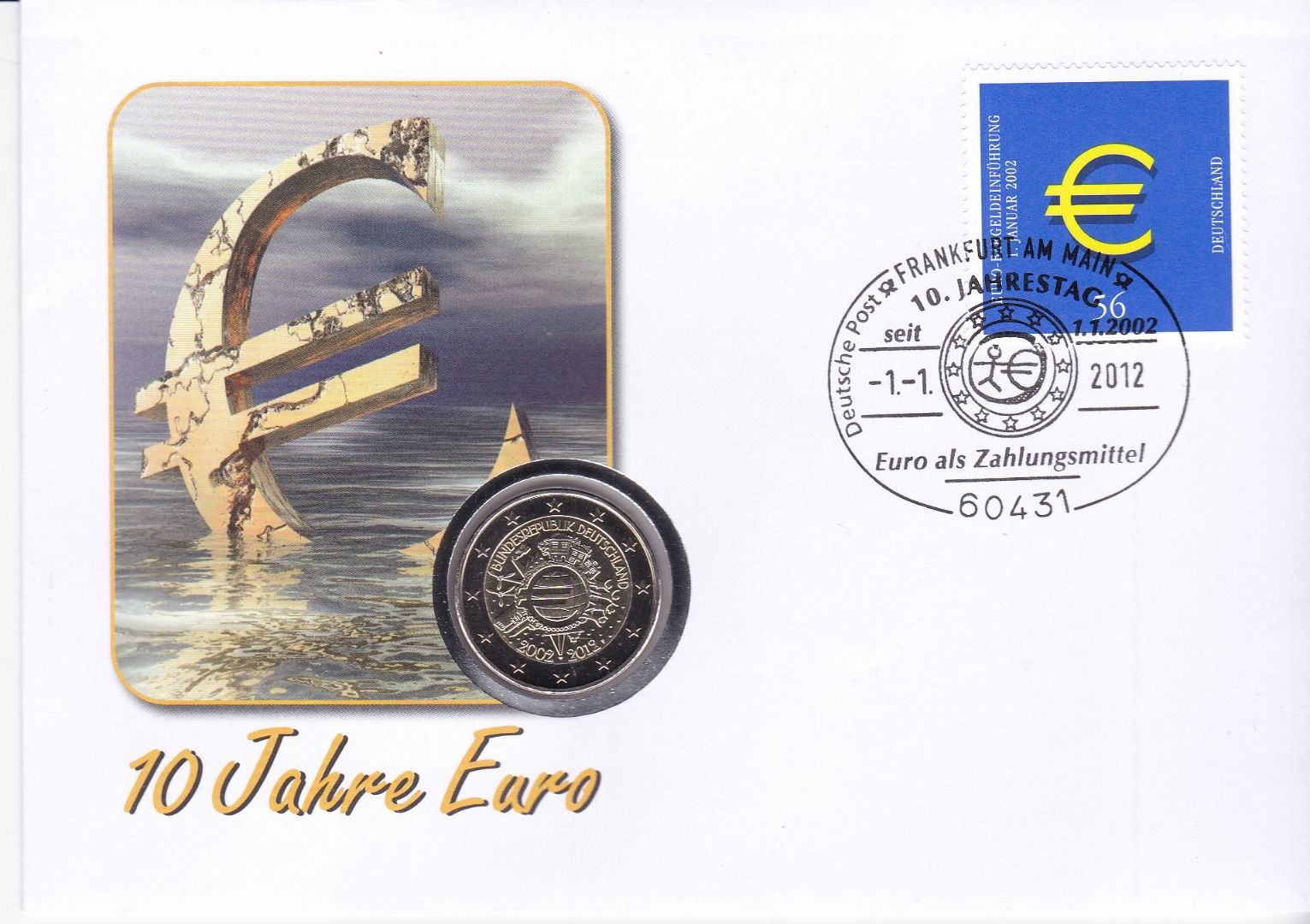 Numisbrief Deutschland 2 Euro 10 Jahre Euro 2012
