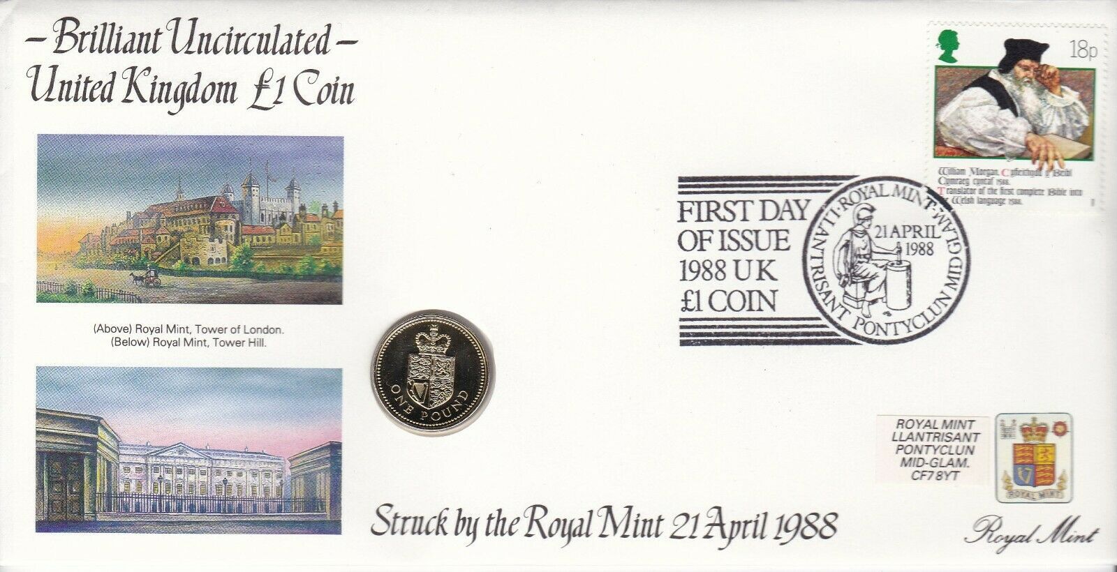 Numisbrief Großbritannien UK 1 Pfund 1988 - Brilliant Uncirculated - First Day