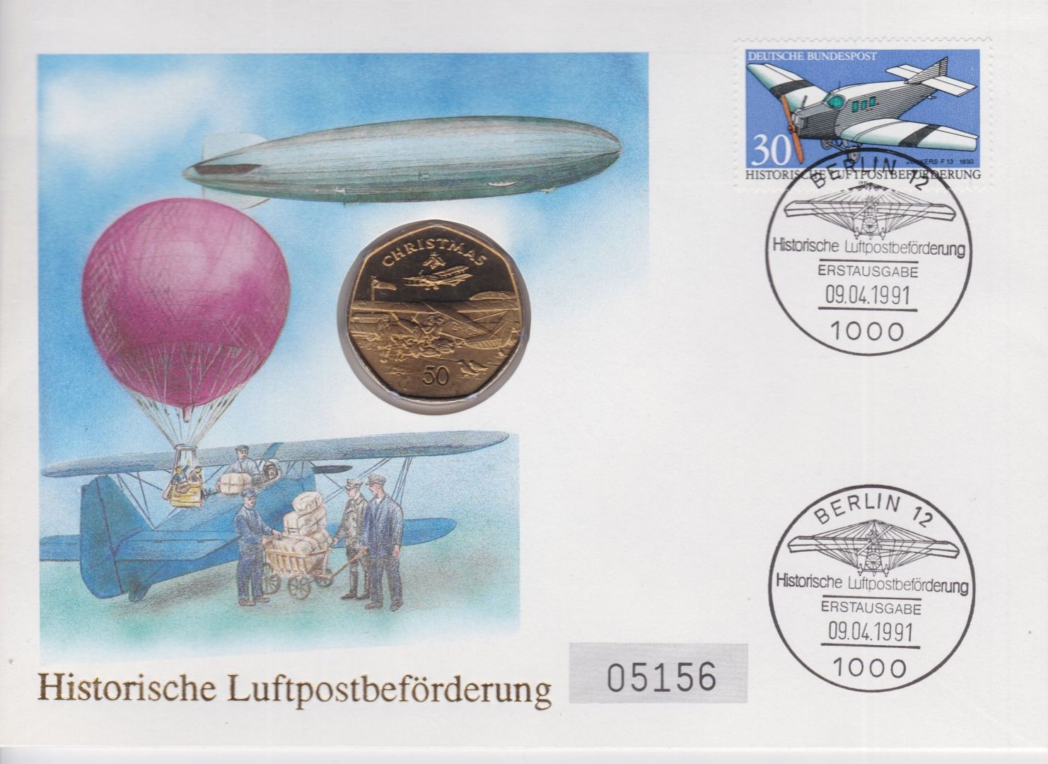 Numisbrief Isle of Man 50 Pence 1985 Christmas Zeppelin 1991