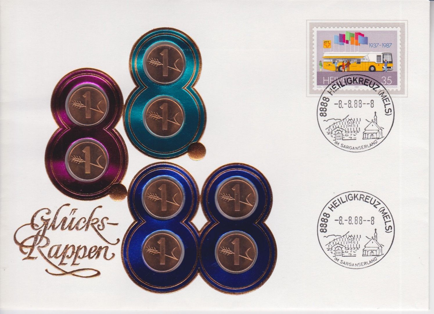 Numisbrief Schweiz Glücks-Rappen 8.8.88