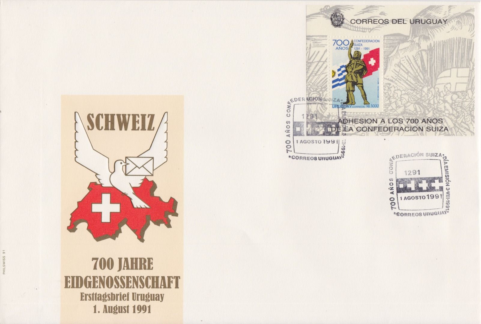 Uruguay Block 55 FDC Schweiz Eidgenossenschaft 1991